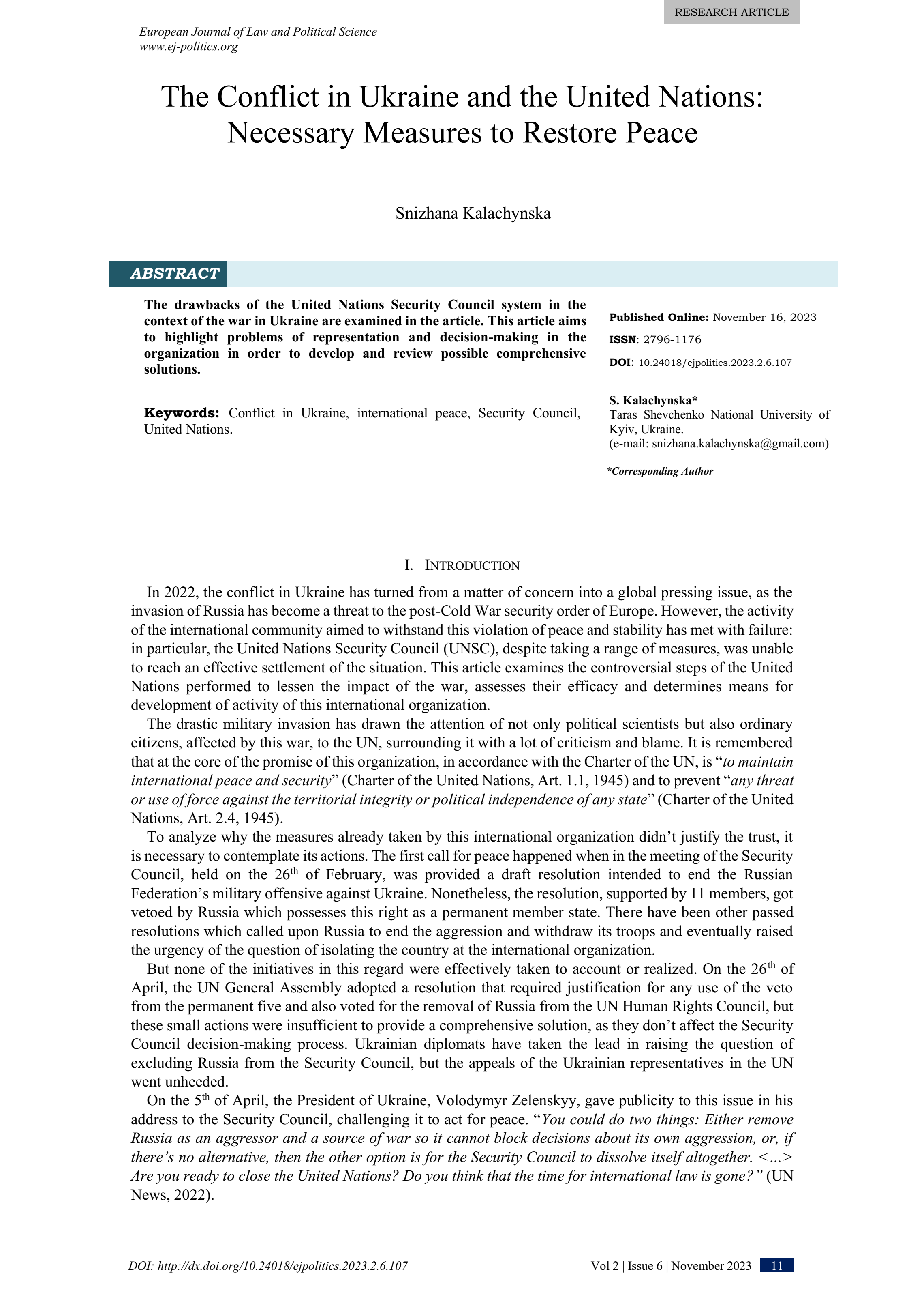 The Conflict in Ukraine and the United Nations: Necessary Measures to Restore Peace
