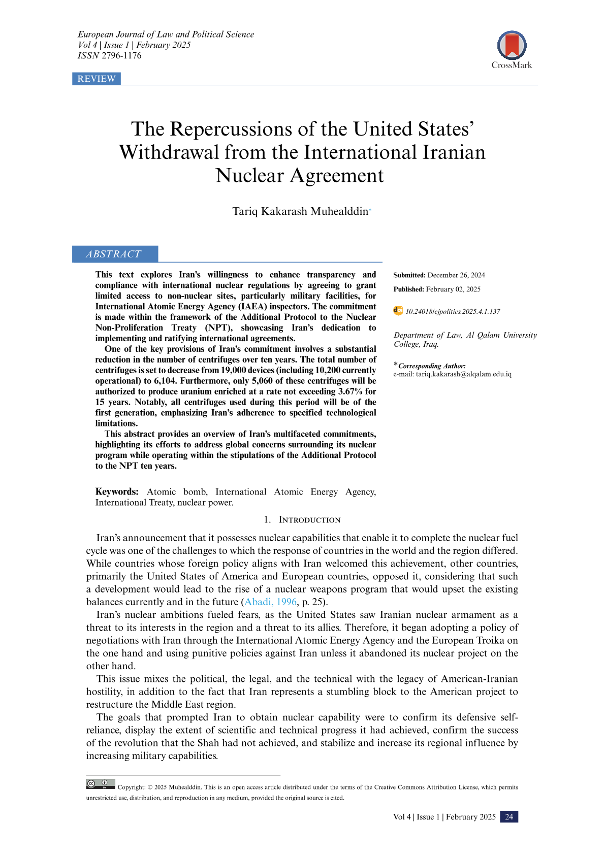 Repercussions of the United States’ Withdrawal from the International Iranian Nuclear Agreement