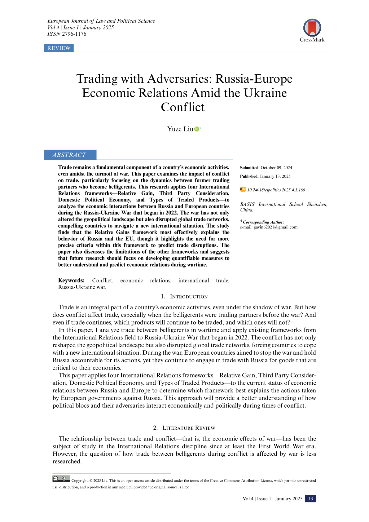 Trading with Adversaries: Russia-Europe Economic Relations Amid the Ukraine Conflict
