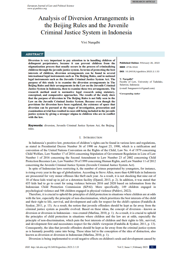 Analysis of Diversion Arrangements in the Beijing Rules and the Juvenile Criminal Justice System in Indonesia