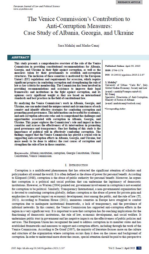 The Venice Commission’s Contribution to Anti-Corruption Measures: Case Study of Albania, Georgia, and Ukraine