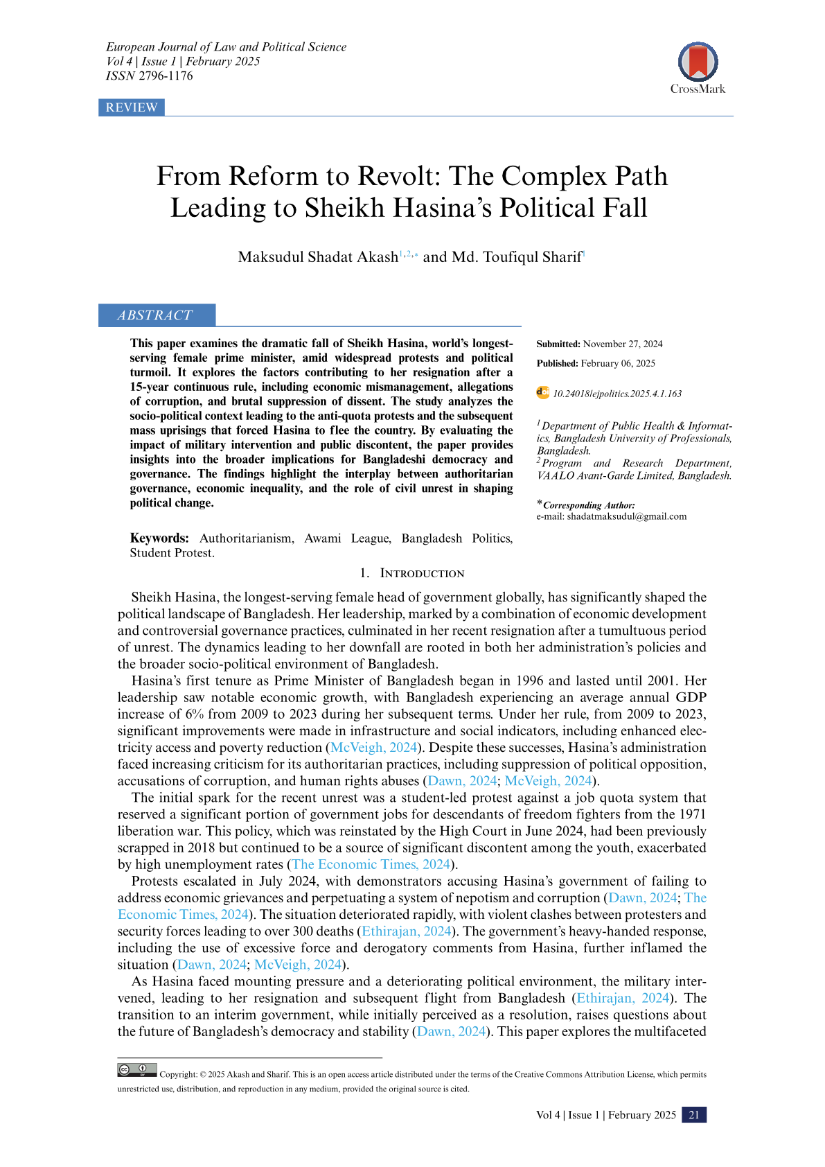 From Reform to Revolt: The Complex Path Leading to Sheikh Hasina’s Political Fall