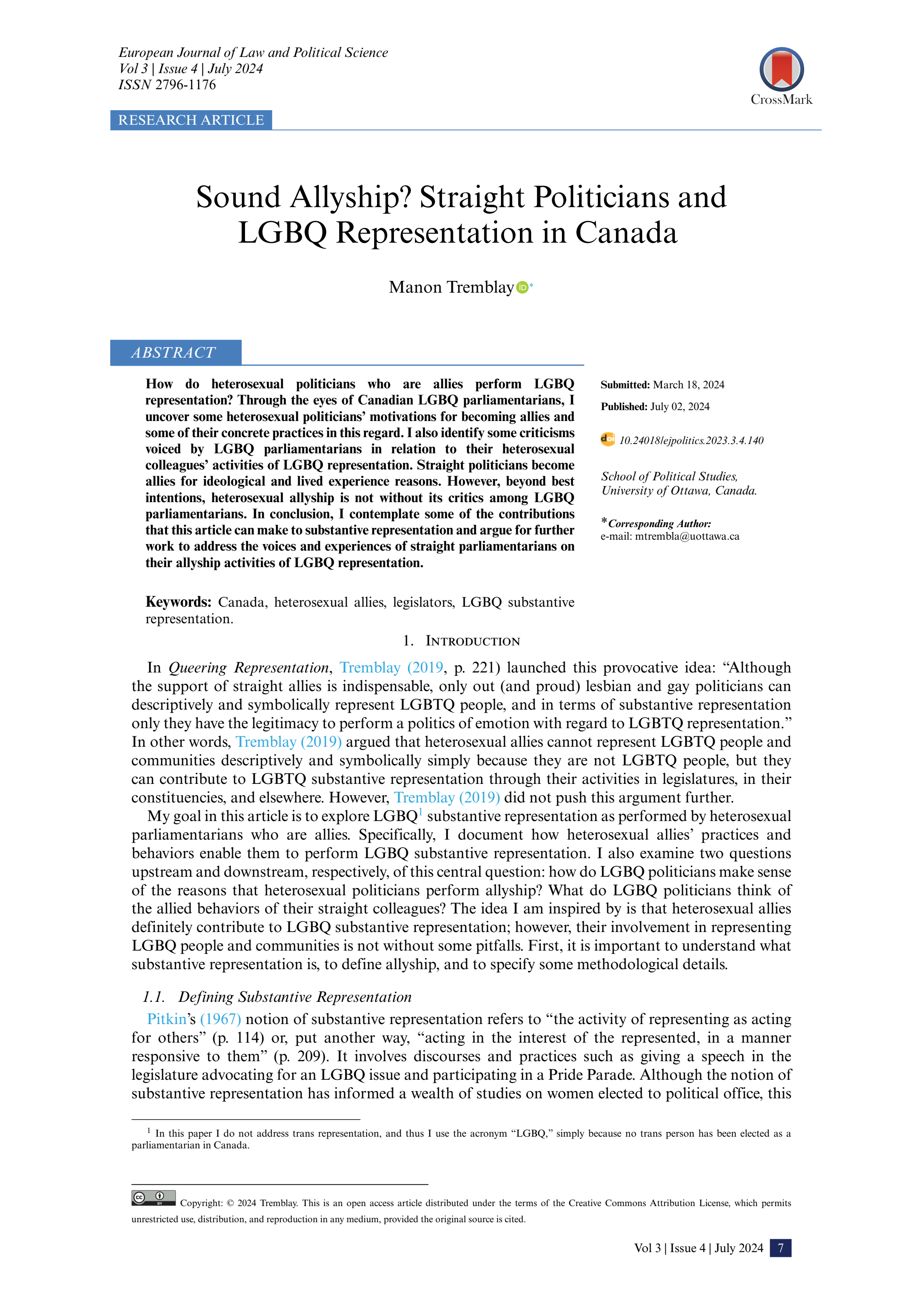 Sound Allyship? Straight Politicians and LGBQ Representation in Canada