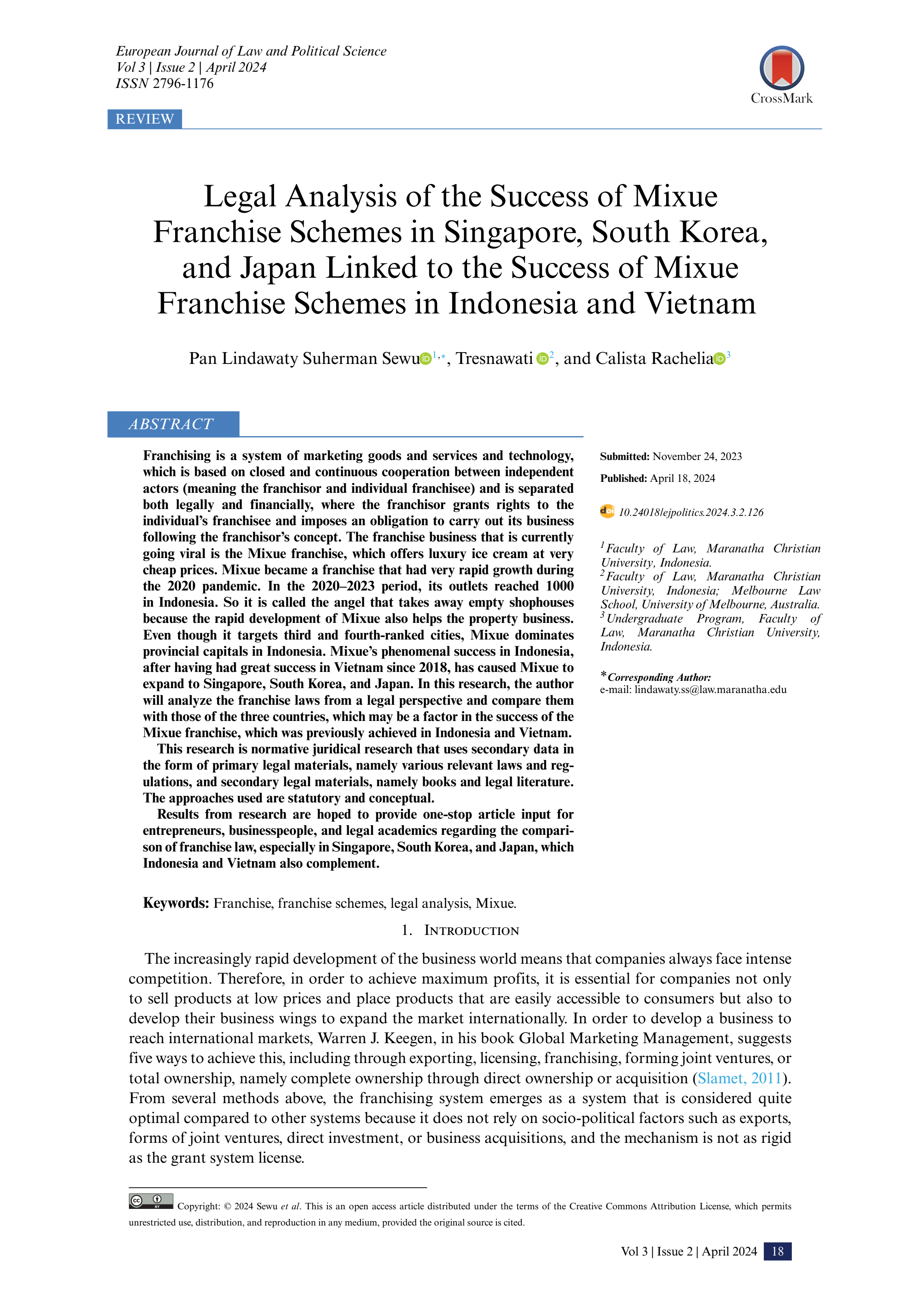 Legal Analysis of the Success of Mixue Franchise Schemes in Singapore, South Korea, and Japan Linked to the Success of Mixue Franchise Schemes in Indonesia and Vietnam