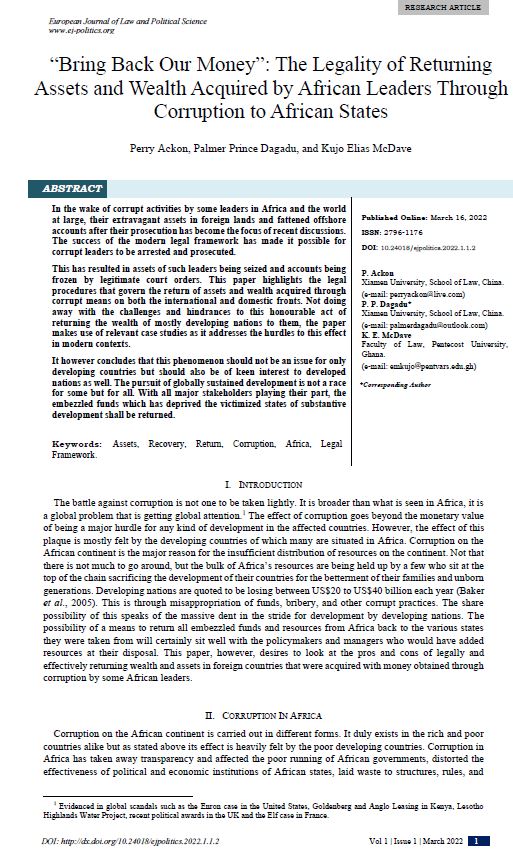 “Bring Back Our Money”: The Legality of Returning Assets and Wealth Acquired by African Leaders Through Corruption to African States