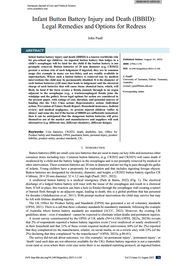Infant Button Battery Injury and Death (IBBID)